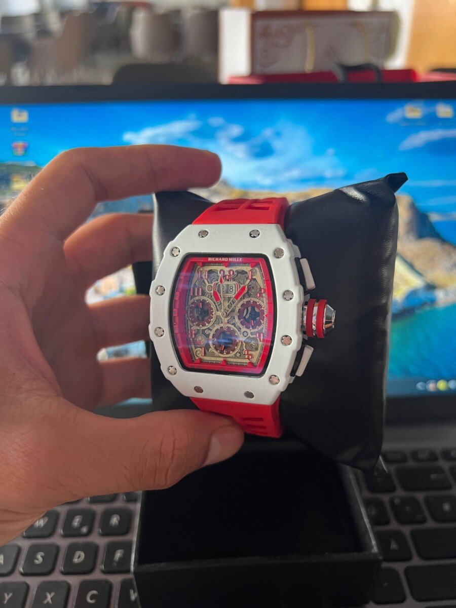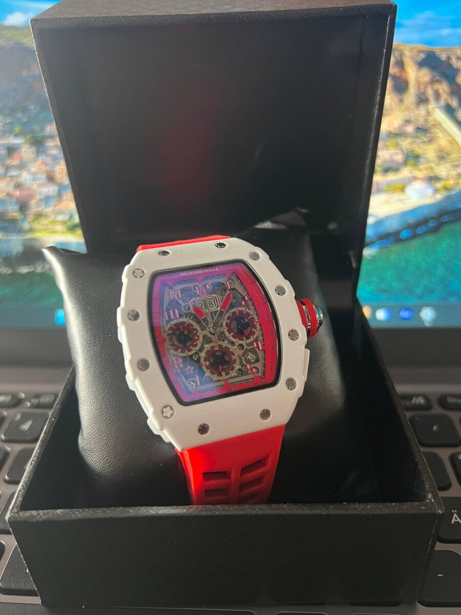 MONTRE RM Son boîtier blanc moderne contraste parfaitement avec le bracelet rouge vif, pour un look audacieux et tendance.