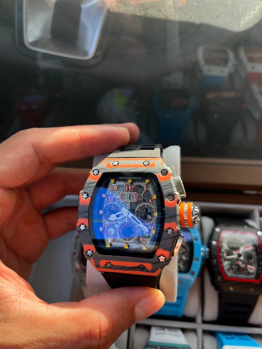 Montre de luxe inspirée du style RM, parfaite pour les amateurs de classe et d’originalité. Avec son cadran squelette qui laisse apparaître les détails du mécanisme, son chronographe précis et son boîtier noir et orange moderne, cette pièce allie sportivité et élégance. Idéale pour compléter vos tenues chics ou décontractées, elle reflète un style unique qui attire tous les regards.